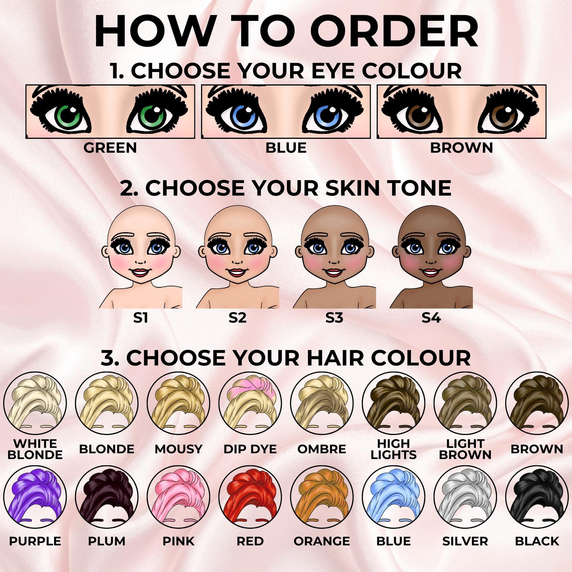 Skin Tone - Eye Colour - Hair Colour - Name and/or Age
