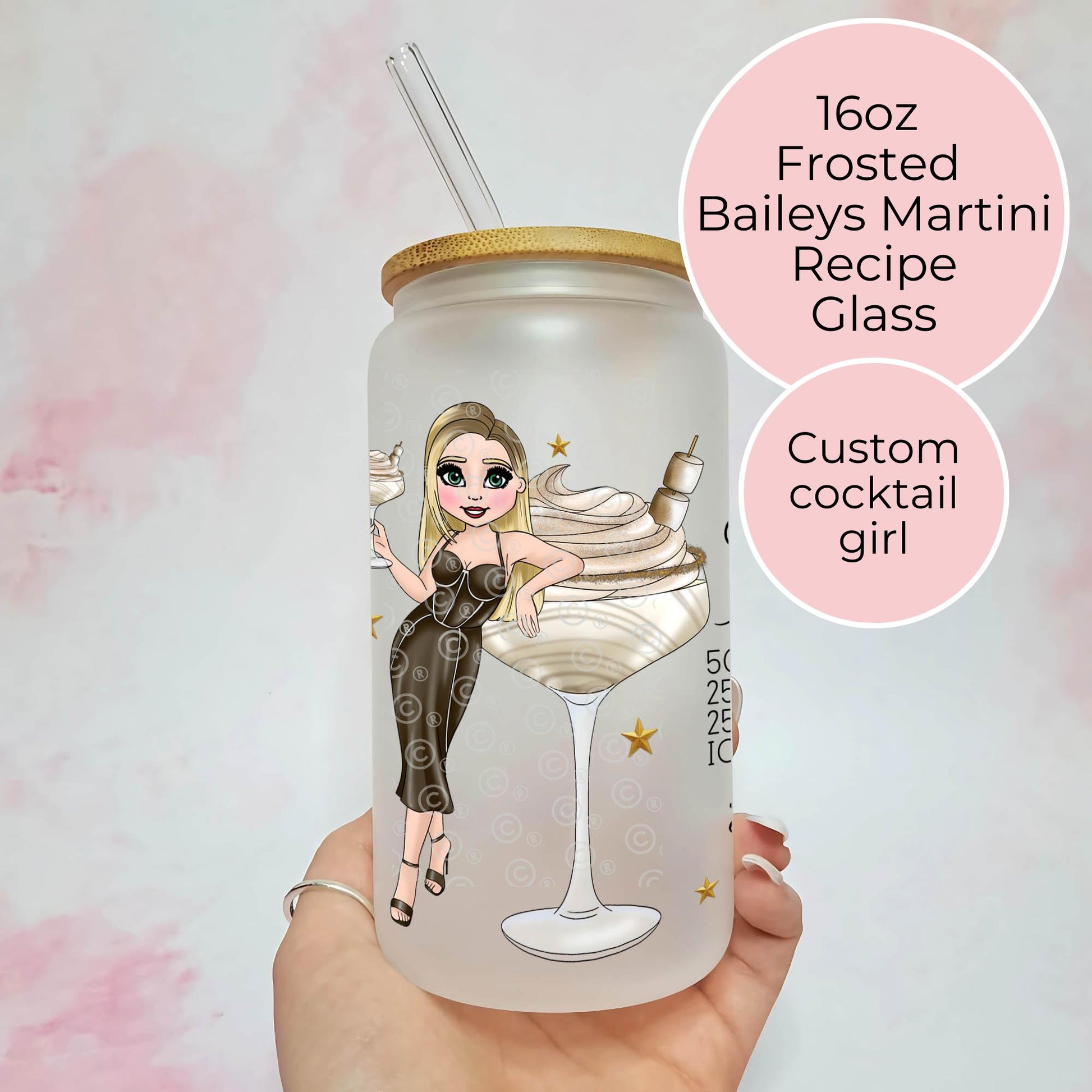 Baileys Martini 16oz Frosted Cocktail Recipe Drinkware, Christmas Cocktail Glass For Boxing Day New Years Eve/Day Party, Festive Drinkware #CG #FL