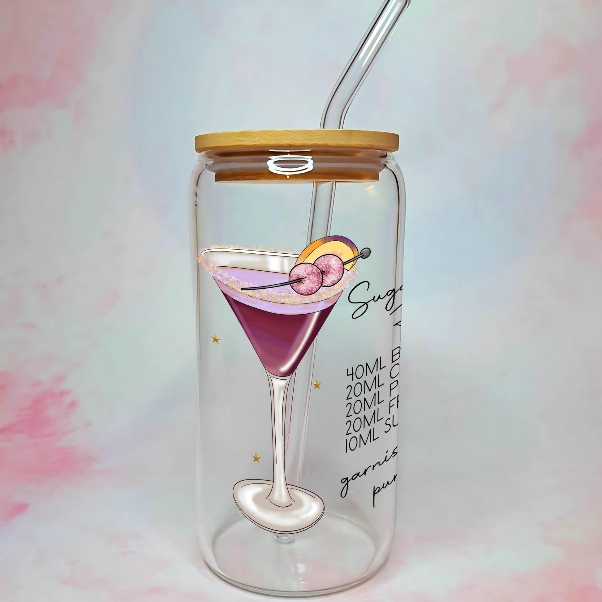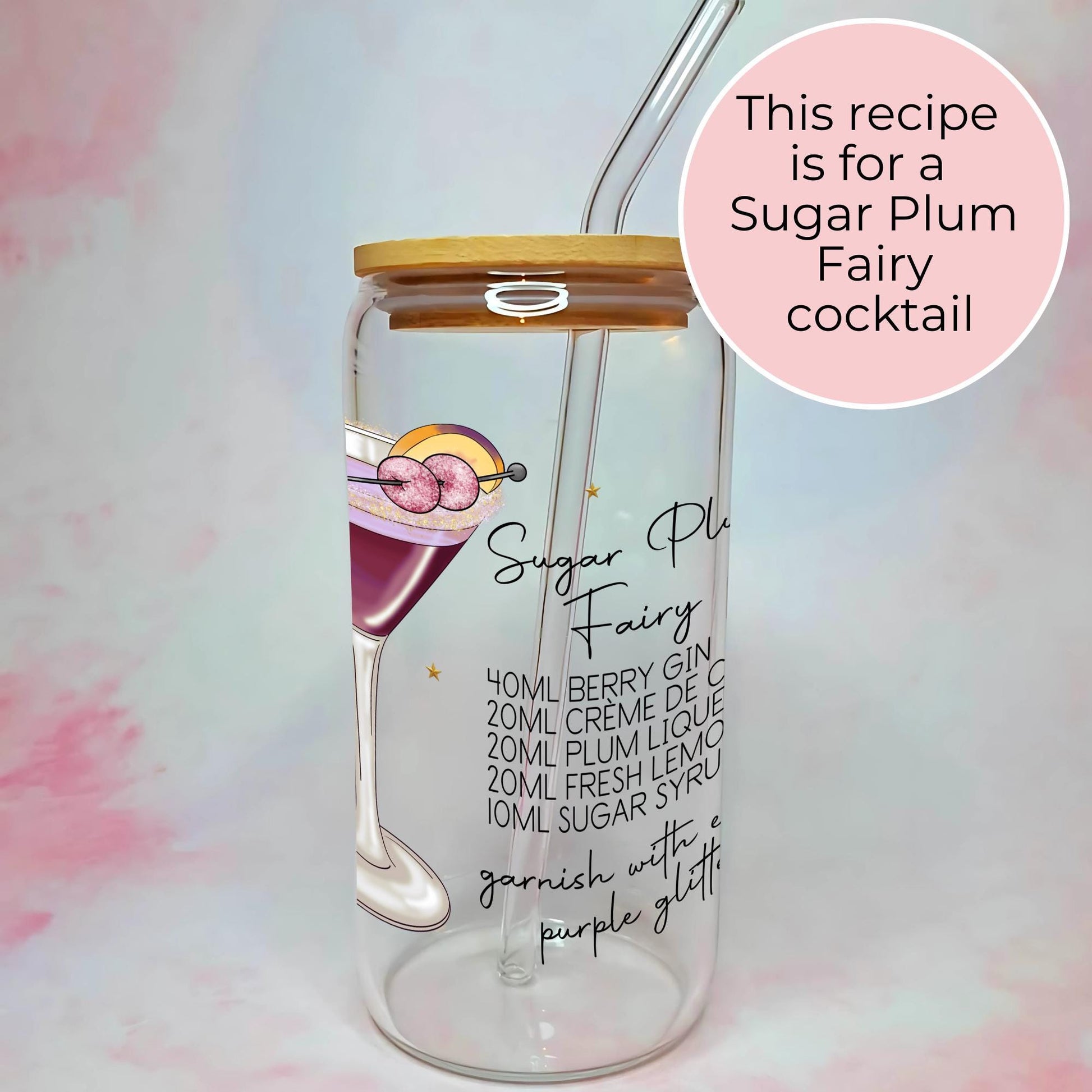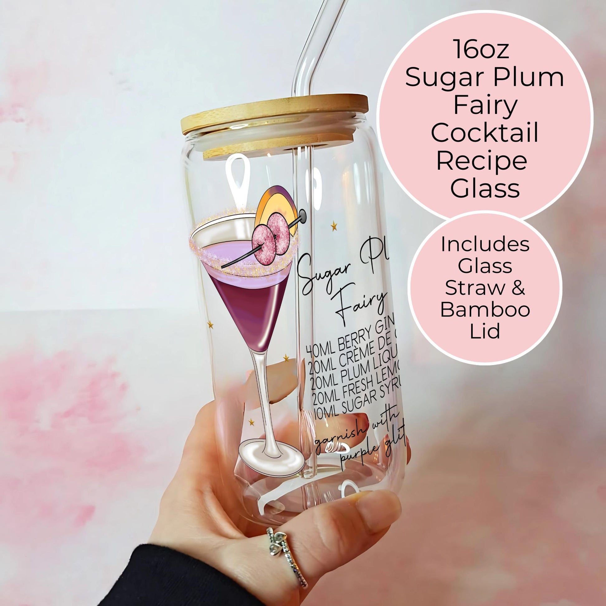Sugar Plum Fairy 16oz ocktail Glass, UV DTF Recipe, Bamboo Lid And Glass Straw #CL
