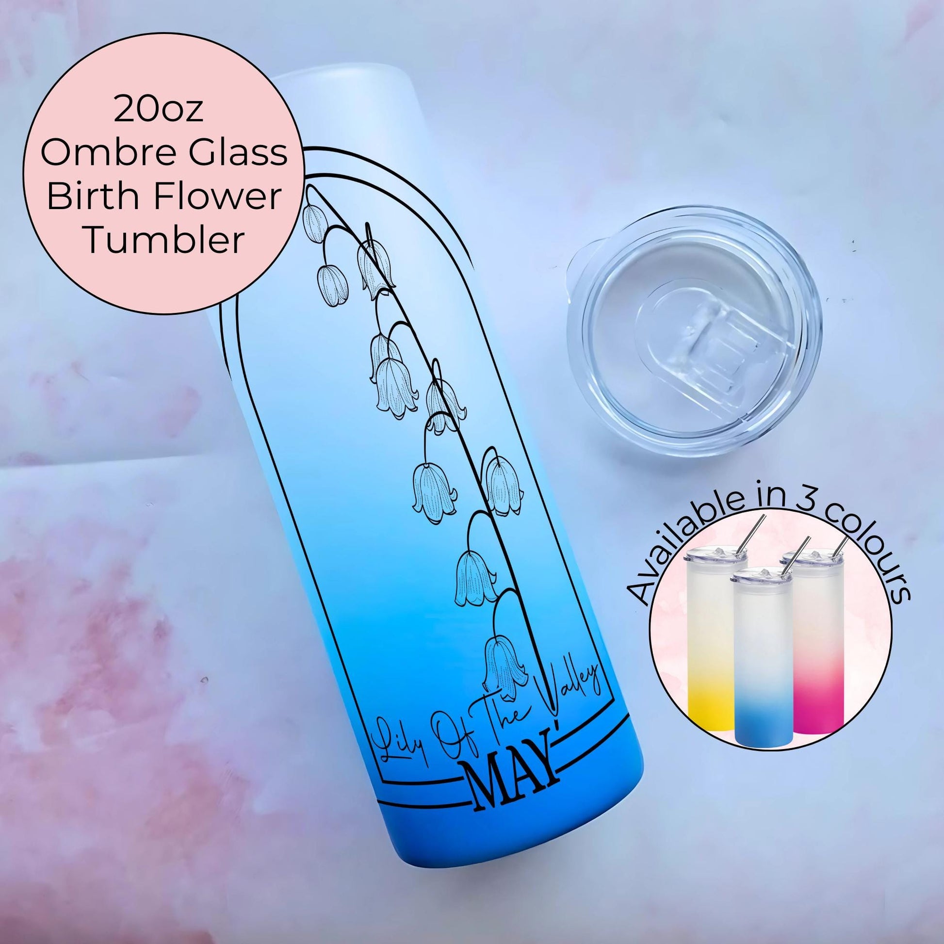 20oz Birth Flower On Skinny Ombre Glass Tumbler, Birth Flower Of May,Lily Of The Valley Line Art Flower, Clip Art Sublimation Decal, Teacher Appreciation Gift #BF