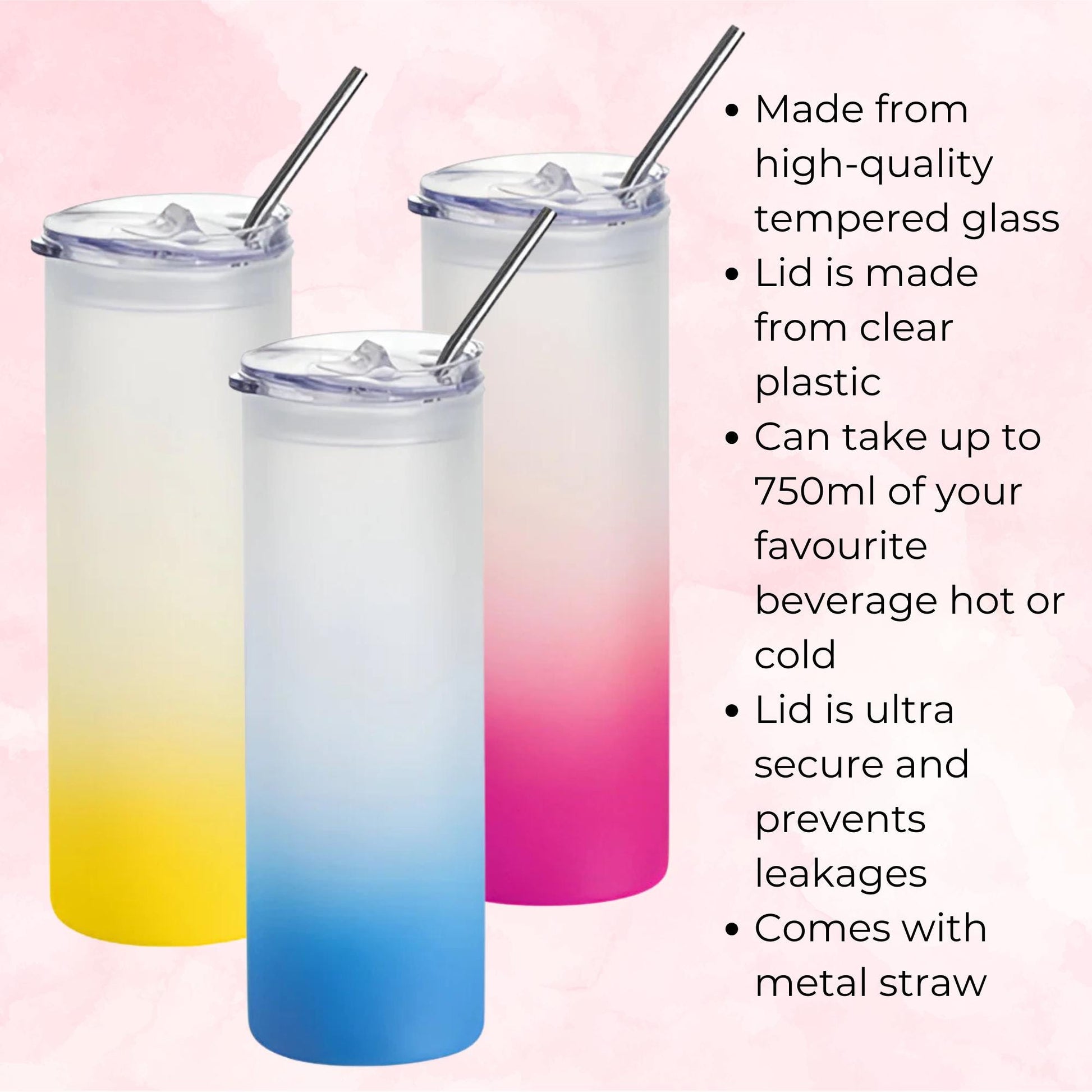 A beautiful 20oz frosted ombre tempered glass tumbler with plastic spill proof lid and metal straw. This glass is perfect for your cocktails, smoothies and other beverages to take with you on the go or keep for a desk drink, personalised with a birth flower for the recipients birth month. The decal is a printed onto glass design, irreversible and permanent. The design won't peel or scratch off, but is still not recommended to be placed in a dishwasher as the heat can make the design fade over time. If dishwashing is a must, please use the top drawer.