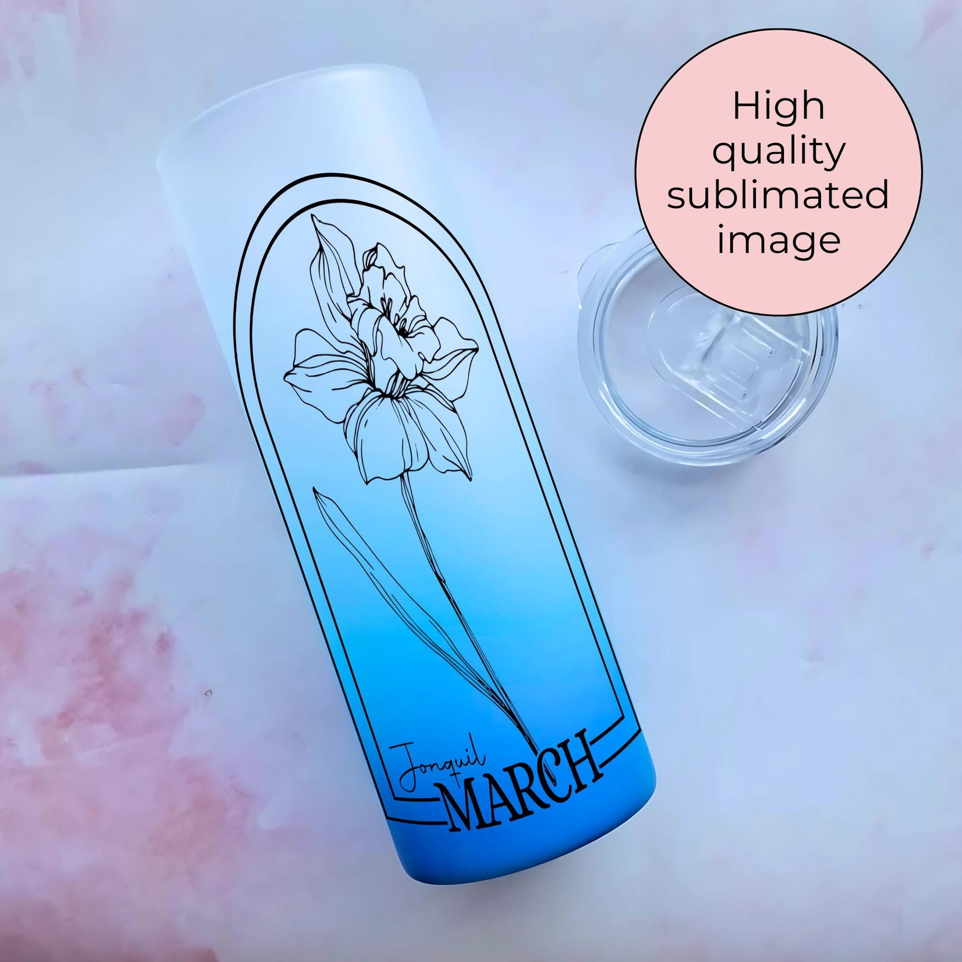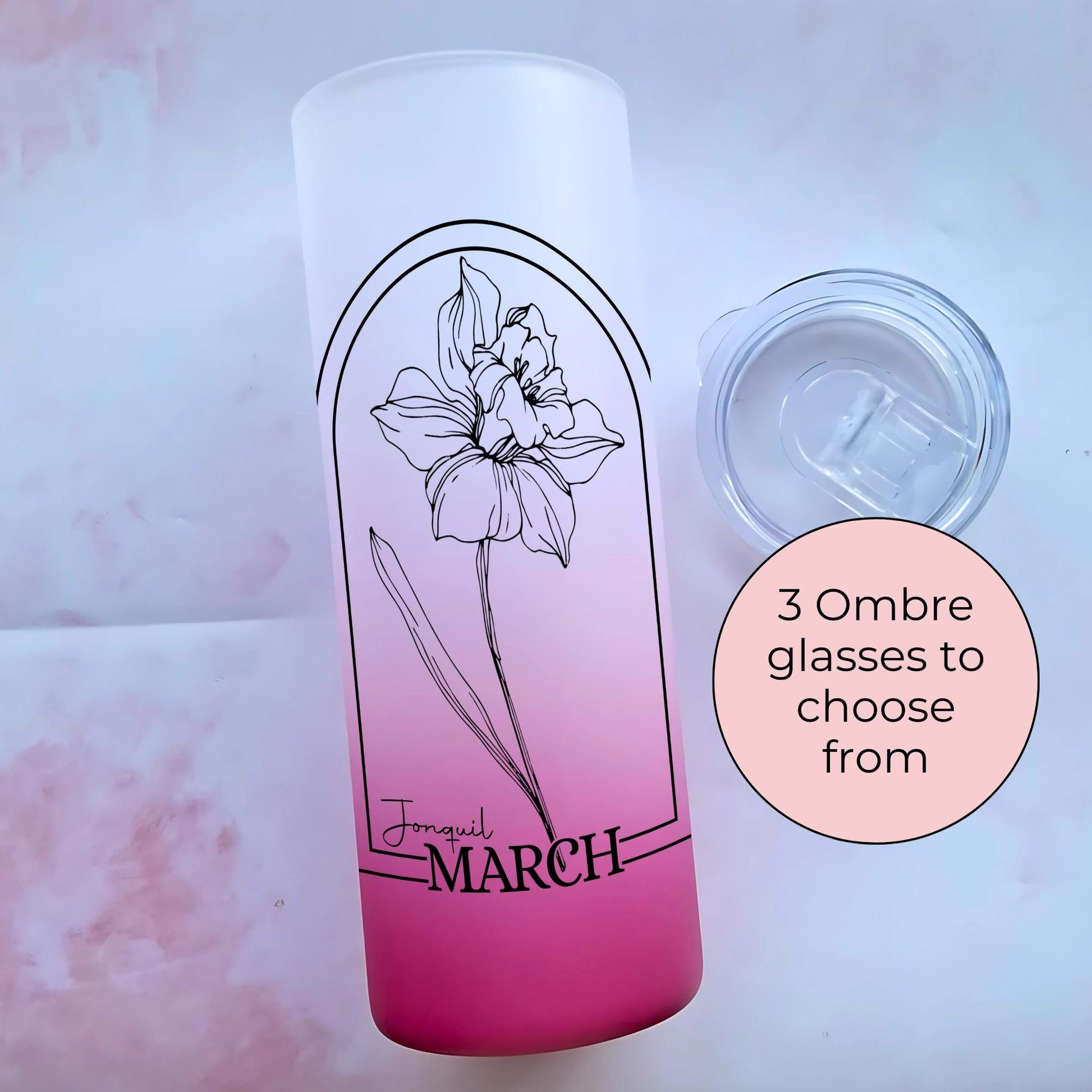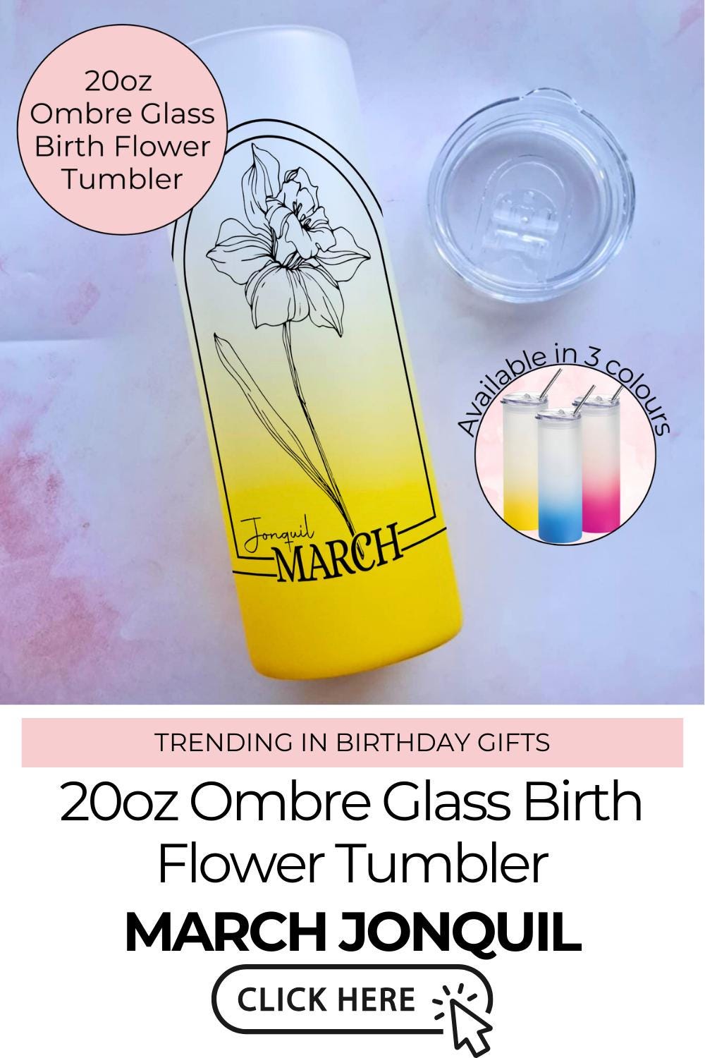20oz Tempered Glass Ombre Tumbler For Her, Milestone Birthday Gift With March Birth Flower, Jonquil Flower Tumbler Gift Hot Or Cold Drinks #BF