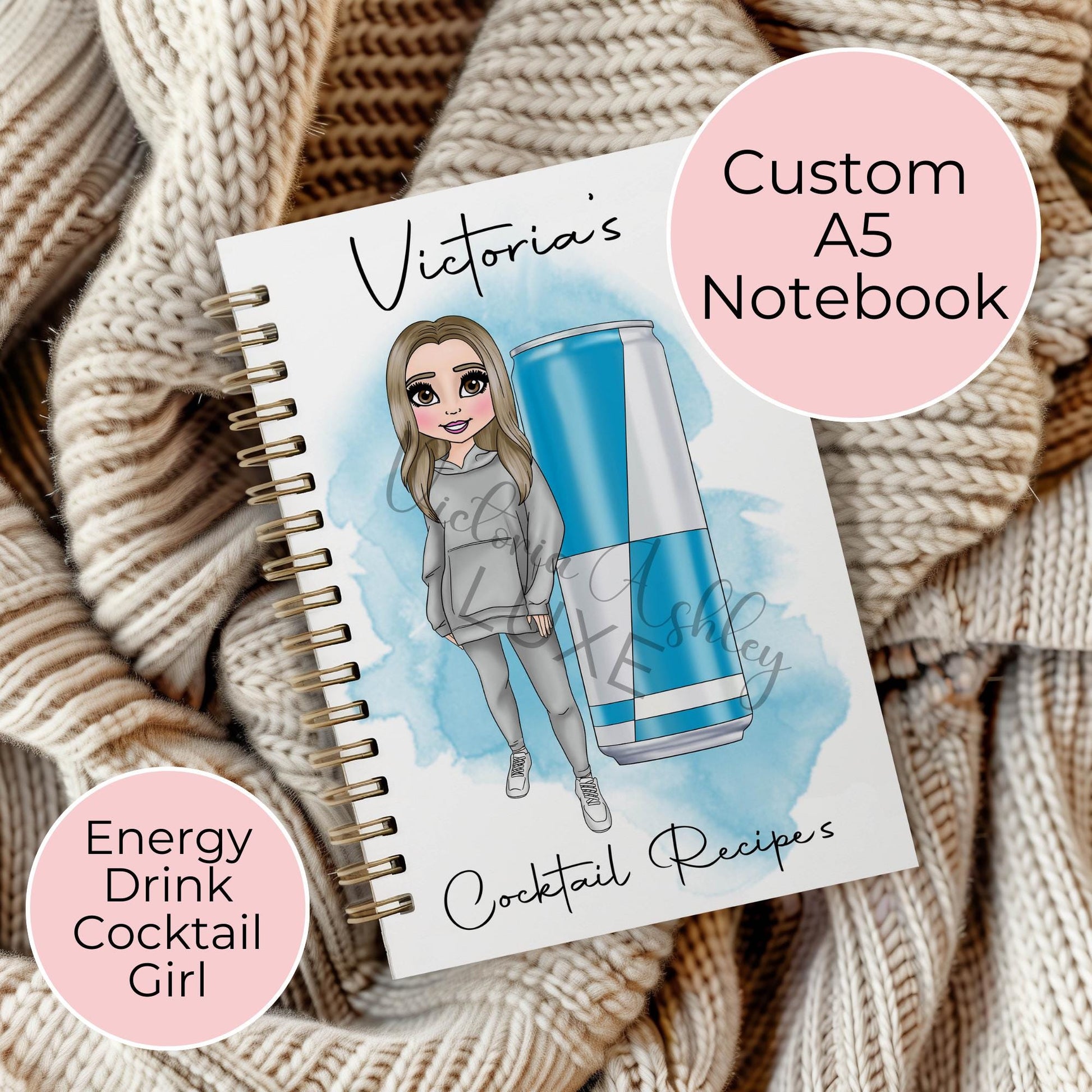 Energy Drink A5 Cocktail Notebook, Wire Bound Spiral Notebook Gift For End Of Term Teacher Gift, Lined Notebook Planning Notebook For Her #NB