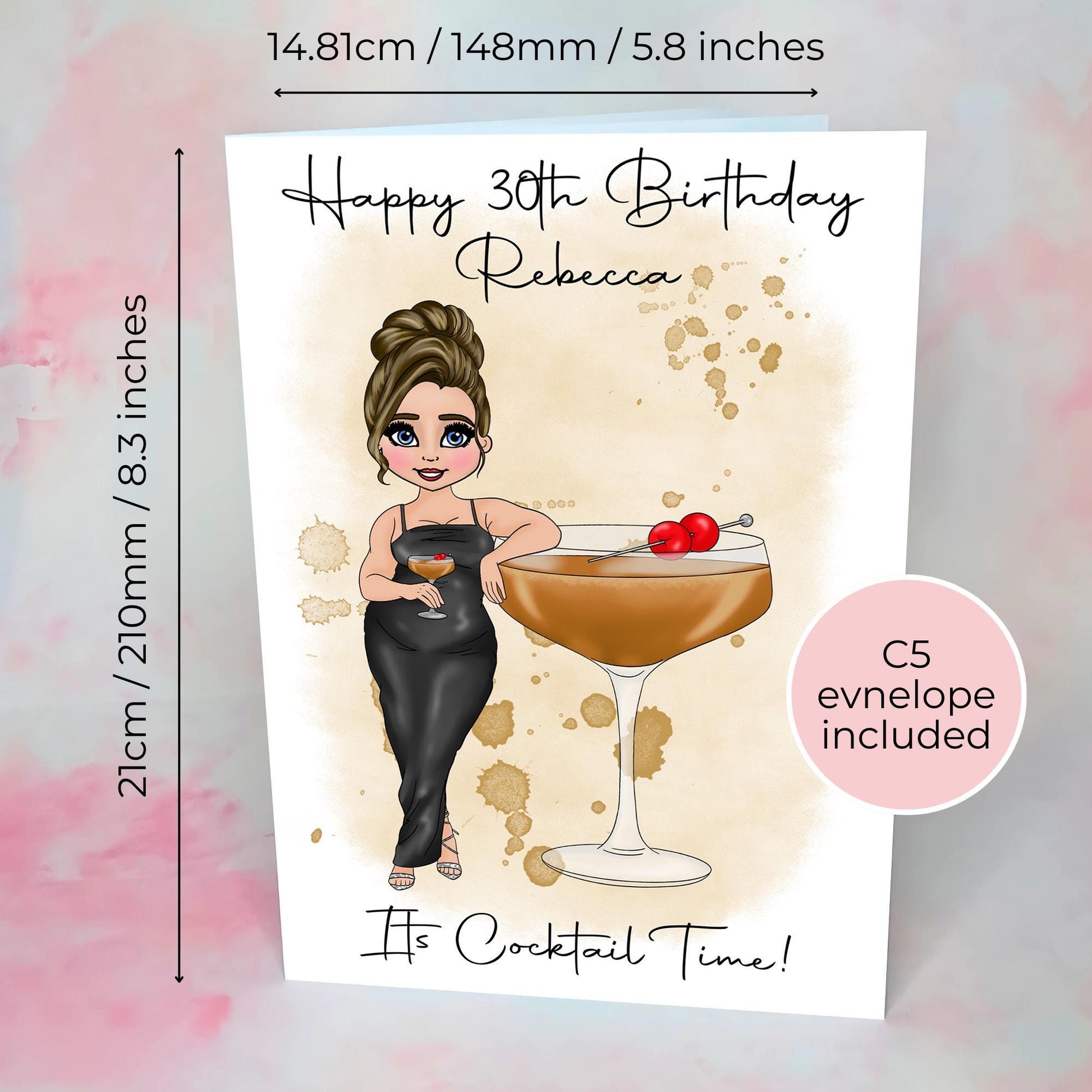 Manhattan Cocktail Birthday Card For Bestie, Boozy Cocktail Theme A5 Card with Custom Character, Hammered Cardstock With Blank Insert #G1