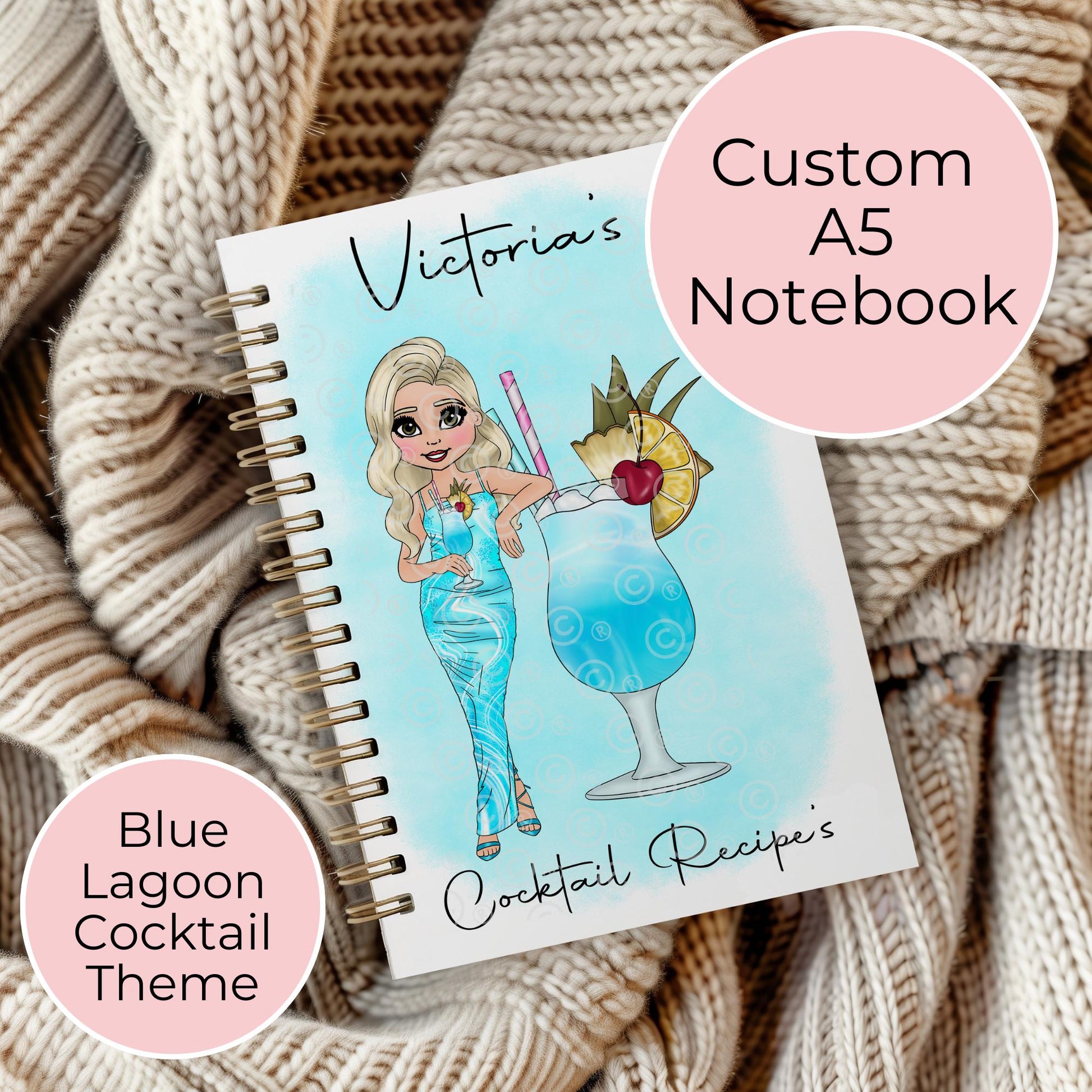 Blue Lagoon Personalised Cocktail A5 Notebook, Custom Spiral Lined Journal for Her, Fun Cocktail Gift Idea, Tropical Stationery Gift For Her #NB