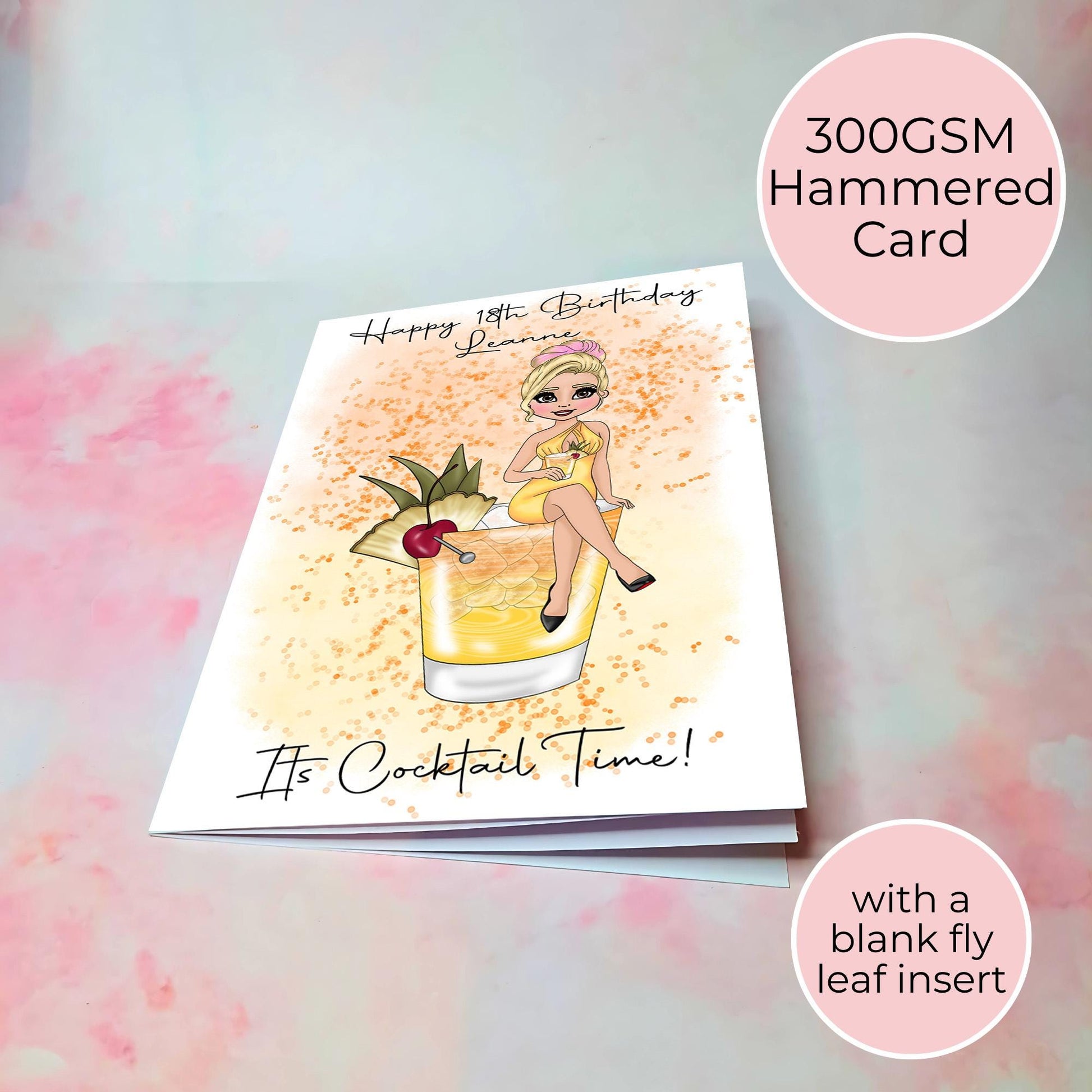 Mai Tai Cocktail Themed Birthday Card, A5 Greeting Card For Mum Sister Birthday, Its Cocktail Time Hammered Card Gift For Her #G1
