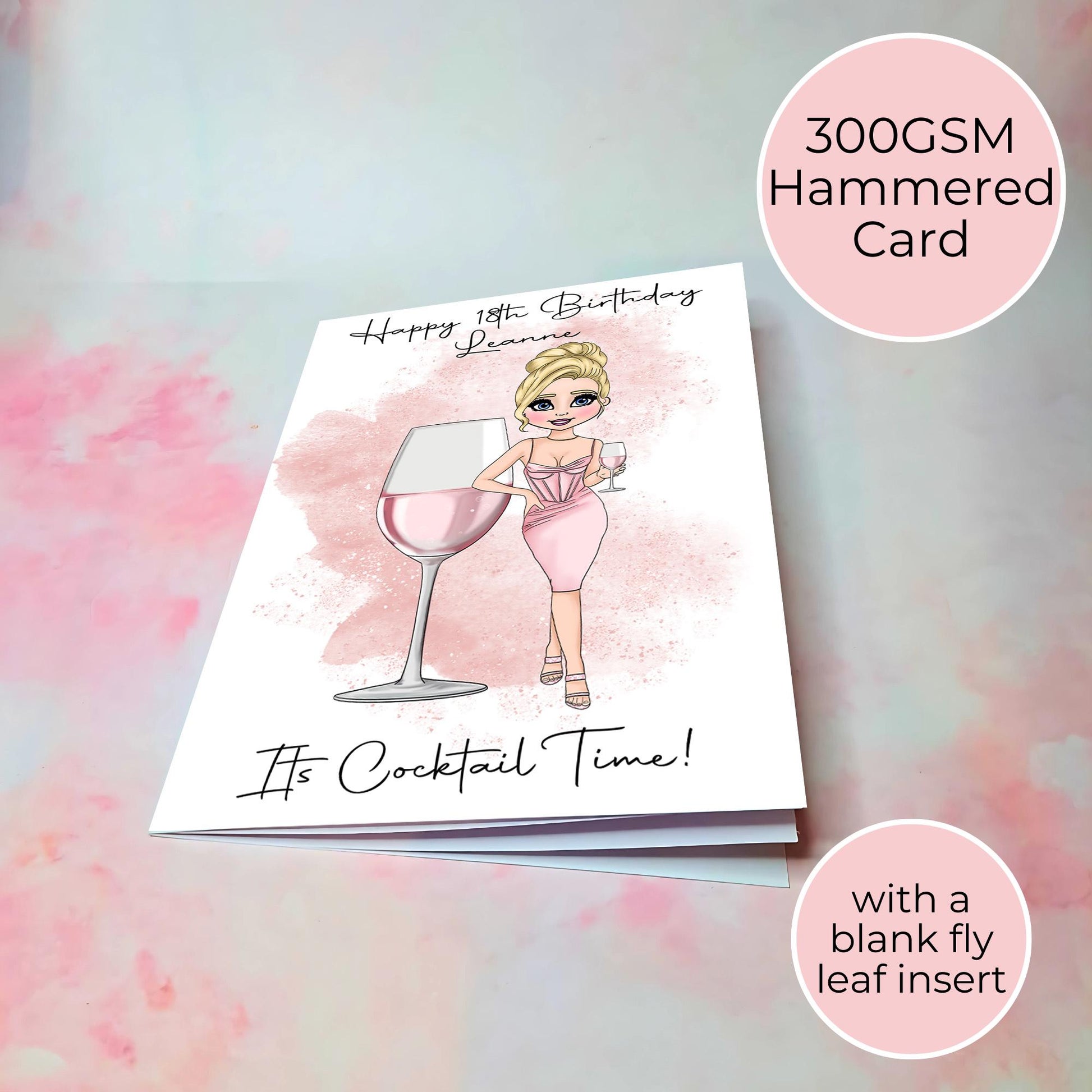 Rose Sangria Cocktail Birthday Card For Her Milestone Birthday, Luxury Blank Inside Hammered A5 Rose Sangria Girl Greeting Card #G1