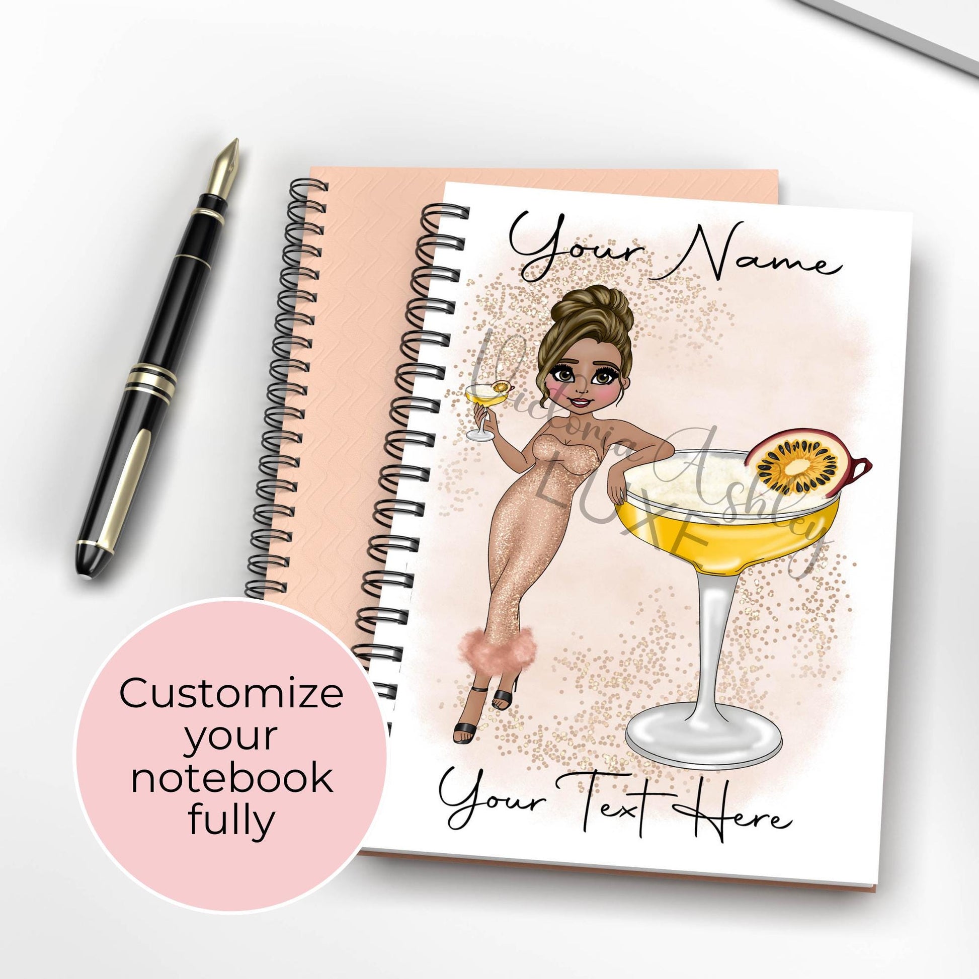 Pornstar Martini Custom A5 Cocktail Girl Notebook, Spiral Notebook For Her Birthday, Custom Character Notebook Gift For Wedding Planning #NB